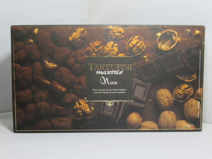 confetti max tris golosi tartufini noce ricoperta da cioccolato fondente e da una velatura di cacao in polvere 500gr