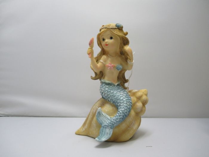 salvadanaio sirenetta con conchiglia h 16,8 cm in resina pregiata 2 assortimenti prezzo cad.