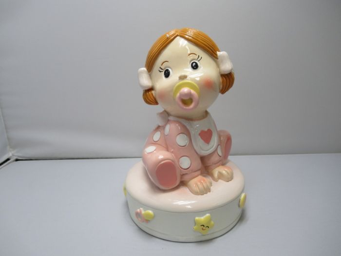 salvadanaio bimba seduta 17,8 cm in resina pregiata
