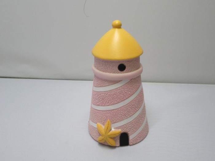 salvadanaio faro rosa-arancionee 12,2 cm in resina