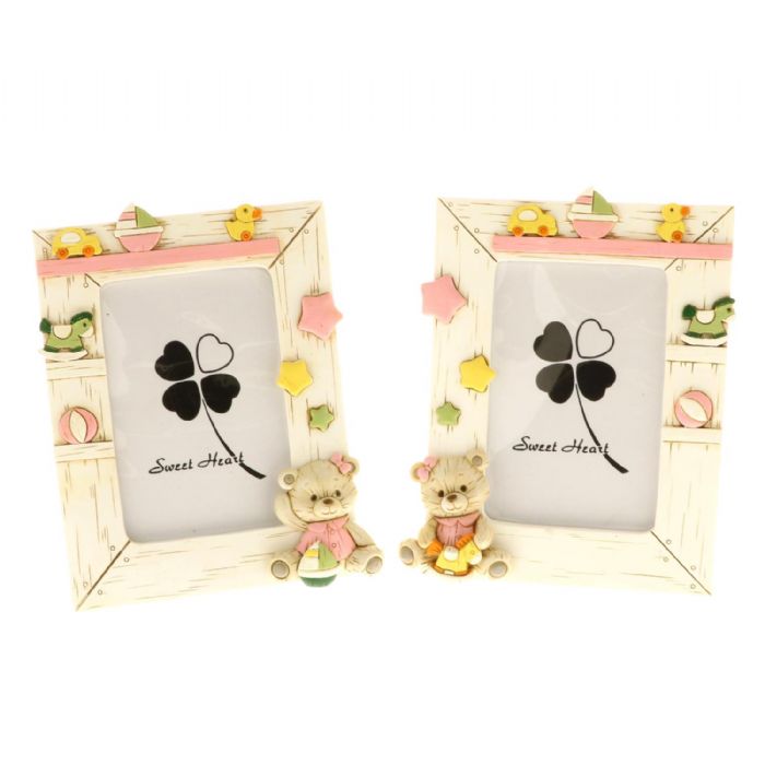 portafoto cm 13X17 rosa orso baby 3 pezzi assortiti cielo