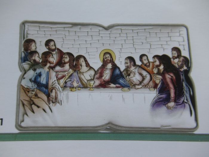 icona bilaminato arg. quadretto ultima cena colorata cm 9x13