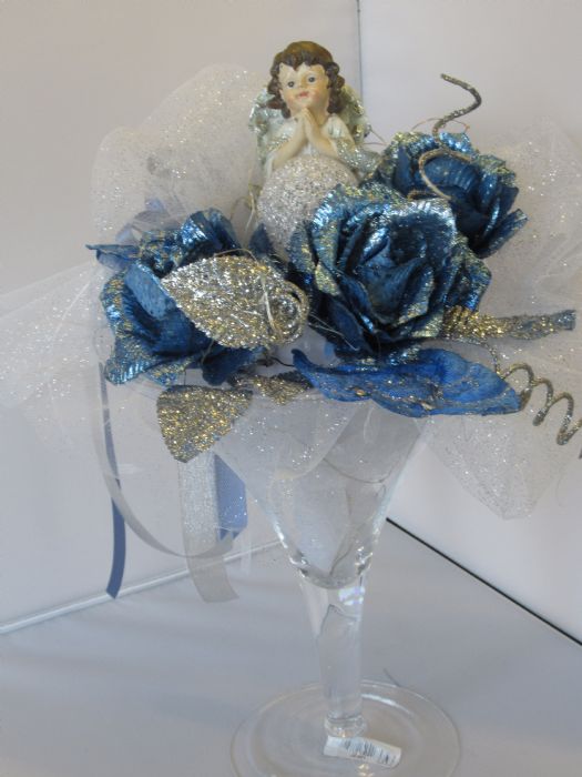 vaso vetro con addobbi natalizi ed angelo led alta cm 48