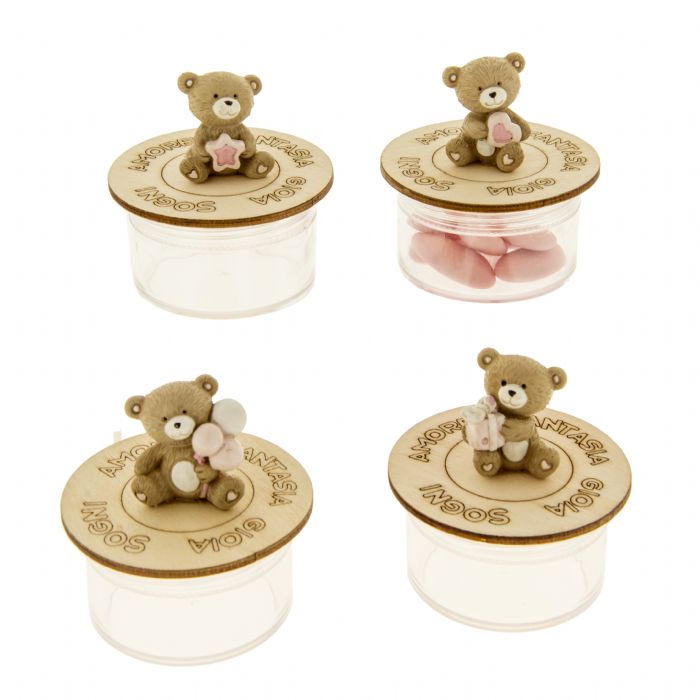 collezione ted dolci orsetti in resina plexi portaconfetto rosa assotimento pz 4 h 8 cm prezzo cad.