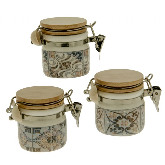 barattolo in ceramica con tappo ermetico in legno collezione pompei in ceramica h cm 6assortimento da 3 pezzi prezzo cad
