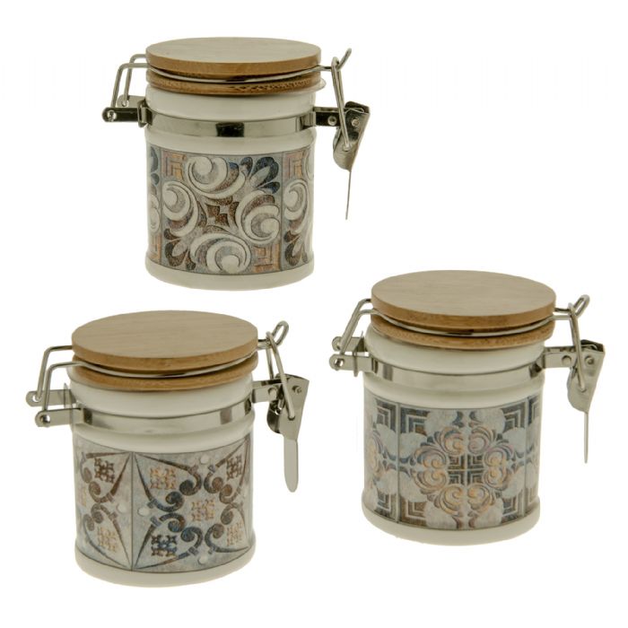 barattolo in ceramica con tappo ermetico in legno collezione pompei in ceramica h cm 8 assortimento da 3 pezzi prezzo cad
