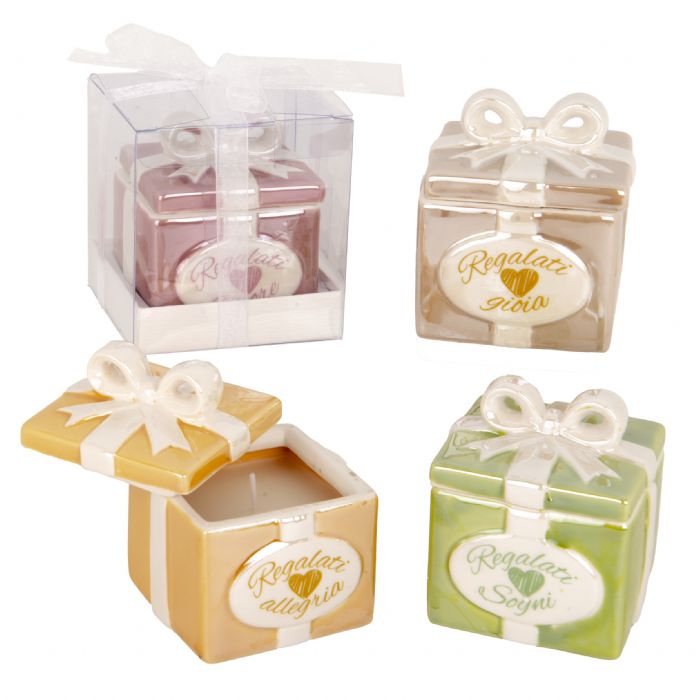 gift candela cm 7 x 7 alto 8 con box assortimento da pezzi 4 prezzo cad