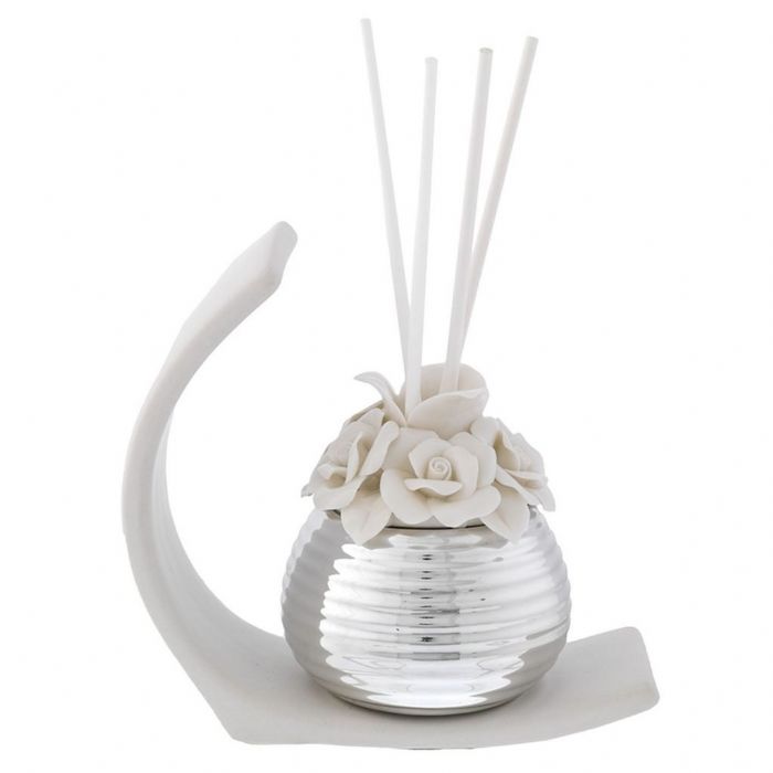 Diffusore cm 9 x 13 milleriche orizzontali con rose su base stilizzata bianca