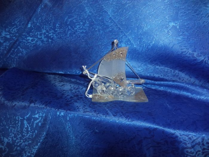 PREZIOSA BOMBONIERA IN CRISTALLO SWAROVSKI VELIERO CON1 VELE COLOR TORTORA LUNGA CM 10CM ALTA10 CM