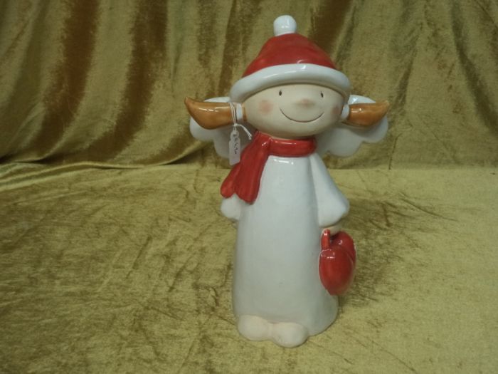 angelo laccato su ceramica lucida con sciarpa alto 30 cm