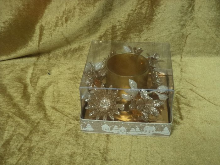 set candele porta-light oro singola con elegante box rifinito con nastro natalizio