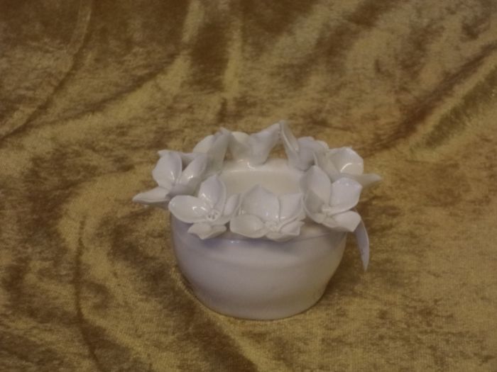 portacandela in ceramica pregiata con roselline in rilievo alta cm 10