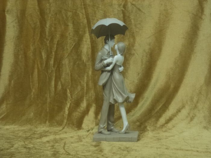 suggestiva bomboniera in resina coppia innamorati con ombrello alta cm 30