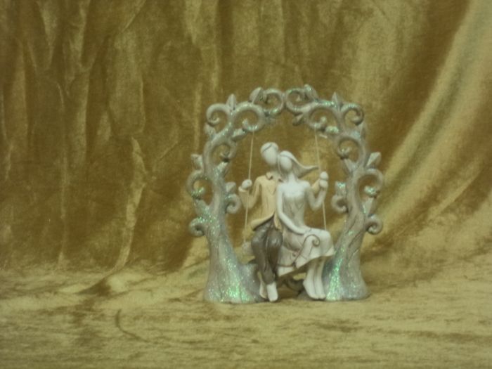 suggestiva bomboniera in resina coppia innamorati su altalena alta cm 15 pezzi 2 assortiti