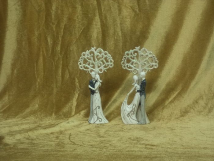 suggestiva bomboniera in resina coppia innamorati con albero alta cm 15 pezzi 2 assortiti
