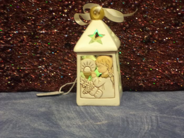 lanterna con luci multicolore in resina pregiata alta cm 10 adatta per cerimonia prima comunione femminuccia