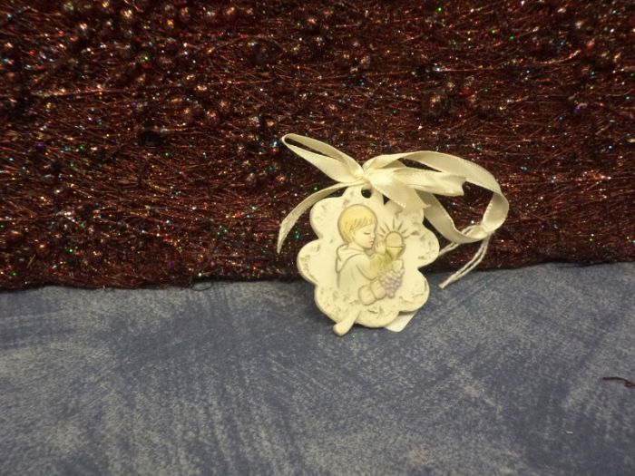 quadrifoglio in resina pregiata con bimbo che prega alto cm 5