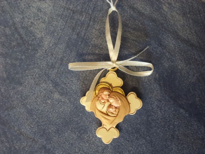 croce in resina sacra famiglia prima comunione cm 7x5 con appendino