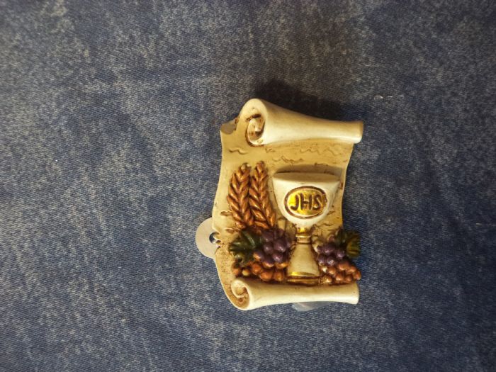 magnete in resina a pergamena calice comunione cm 5 X 5