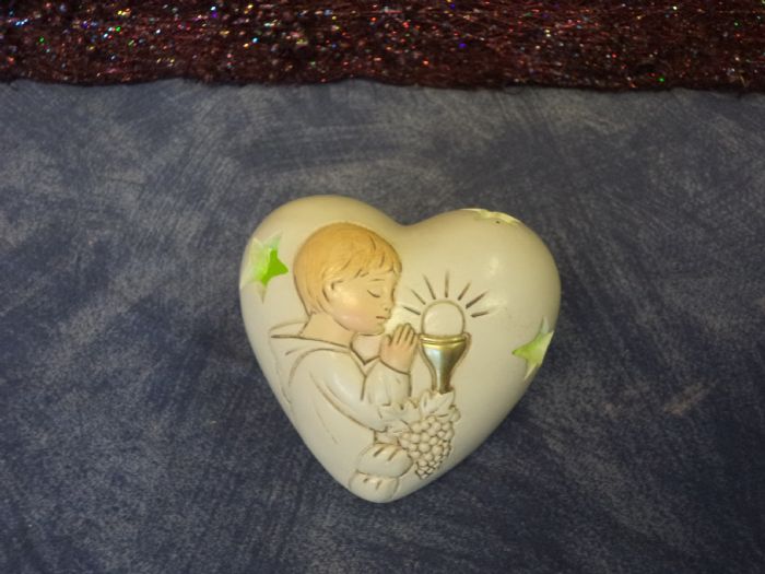 suggestivo cuore in resina con luci multicolore cm8 x 8 con bimbo