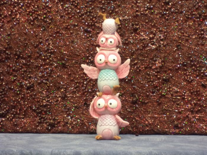 famiglia gufetti in resina colorata pezzi 2 assortiti alti cm 21