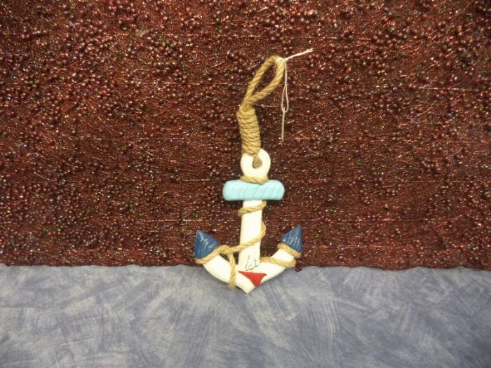ancora grande con barchetta a vela in sovraimpressione avvolta dallo spago con cappio terminale alta cm 17