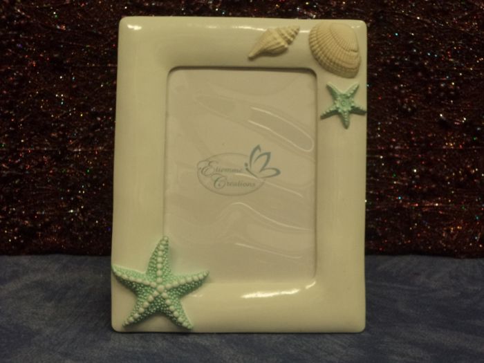 collezione marina portafoto in resina porcellanata lucida con conchiglie e stelle marine azzurra o verde cm 14x17 assortimento da 2 pezzi