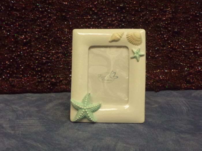 collezione marina portafoto in resina porcellanata lucida con stelle marine e conchiglie azzurre o verdi cm 10x13 assortimento da 2 pezzi