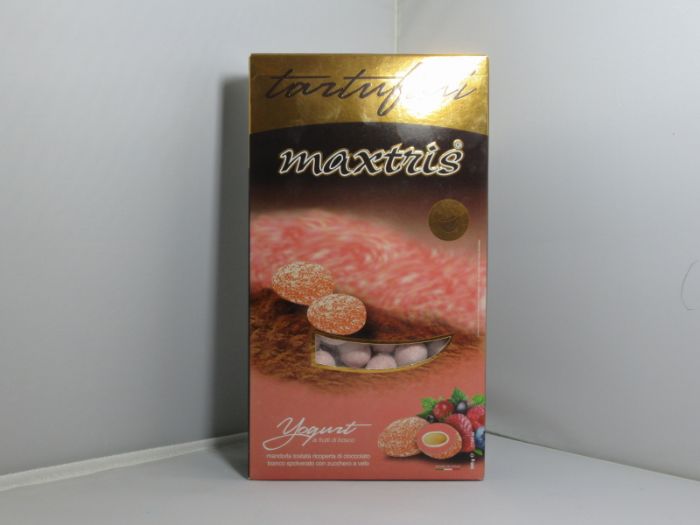 confetti max tris golosi tartufini yogurt ai frutti di bosco mandorla tostata ricoperta da cioccolato bianco spolverato con zucchero a velo 500gr